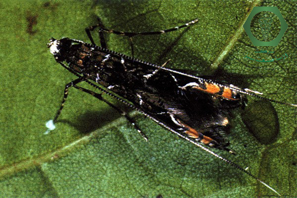 حشرهای مکنده شیره گیاه که به بخشهای مختلف گیاه حمله میکند. با تولید عسلک، باعث رشد کپک دودهای و جذب مورچهها میشود که از آنها محافظت میکنند.