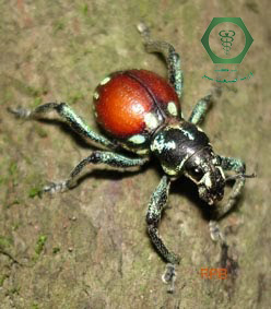 عمدتاً در پاپوا گینه نو یافت میشود. حشره بالغ از سطح غلاف تغذیه میکند، در حالیکه لاروها به درون غلاف نفوذ کرده و دانهها را از بین میبرند. آفتی بسیار مخرب و کنترل آن دشوار است.
